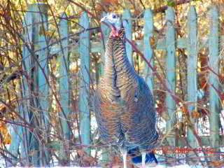 We first focused our efforts on islanders’ bird feeders. On Island Avenue, Bill greeted us as we perused his feeder from the street through binoculars whose lenses were caked with frozen fog and snow. Bill told us several bird stories including one about which species of hawk (Cooper’s, Sharp-shinned, and Goshawk) was better at chasing small birds through bushes. He spends considerable time looking out the window at his feeders, as an alternative to watching TV. In all, we saw 12 species at his feeders, including 6 turkeys.